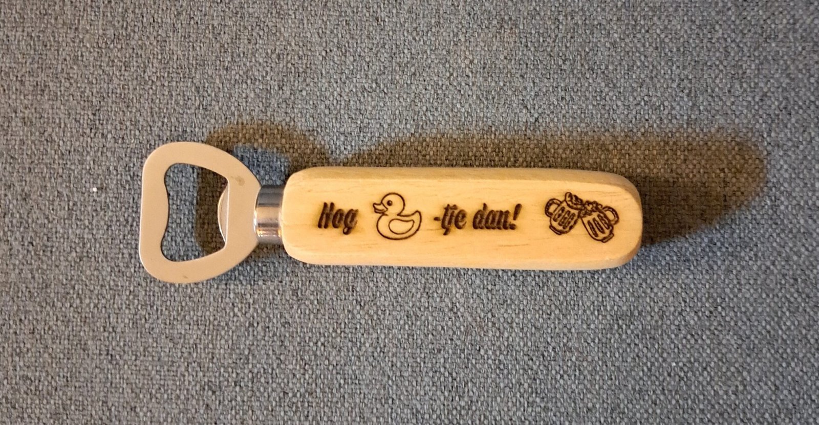 Leuke flesopener met tekst.