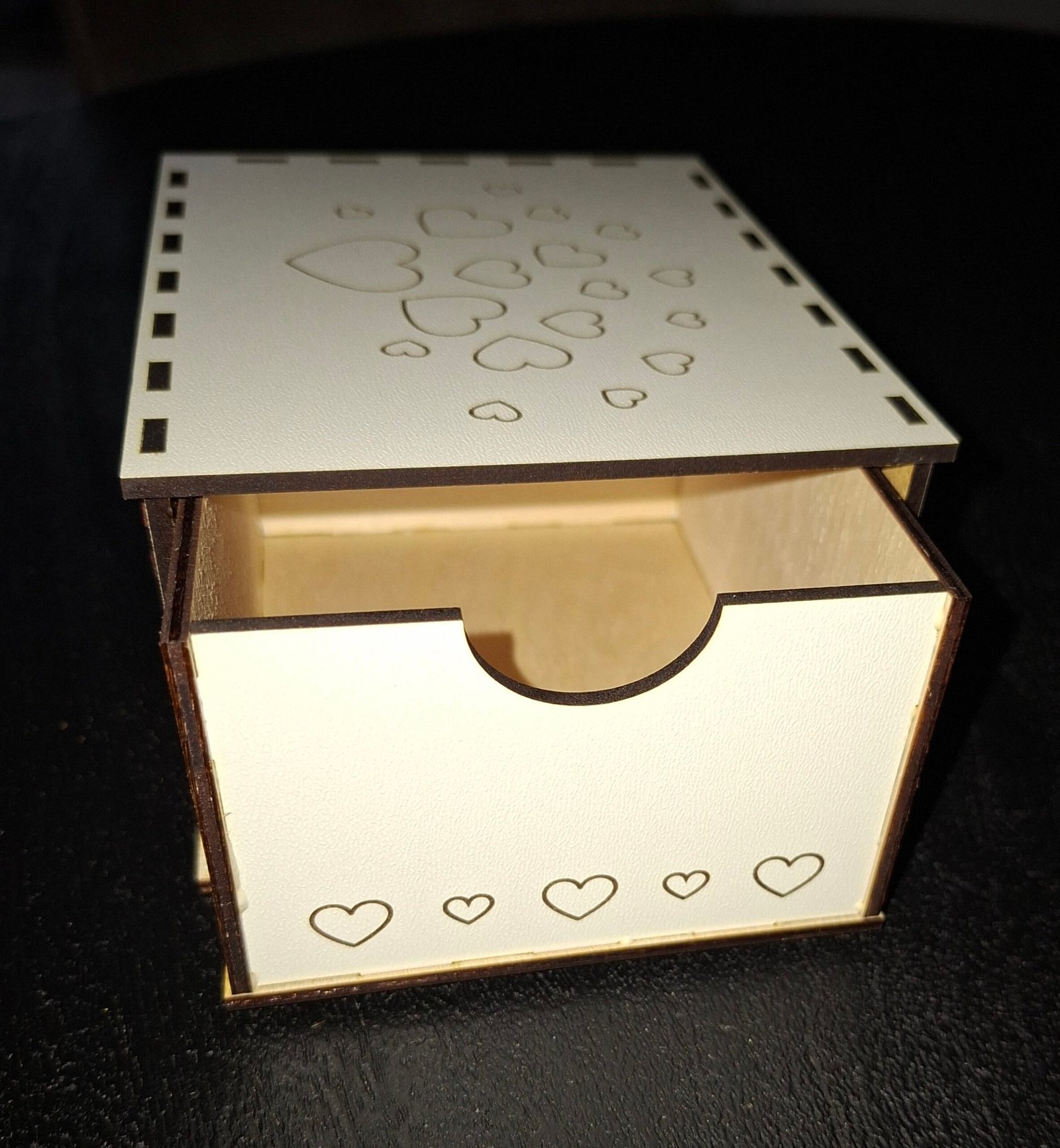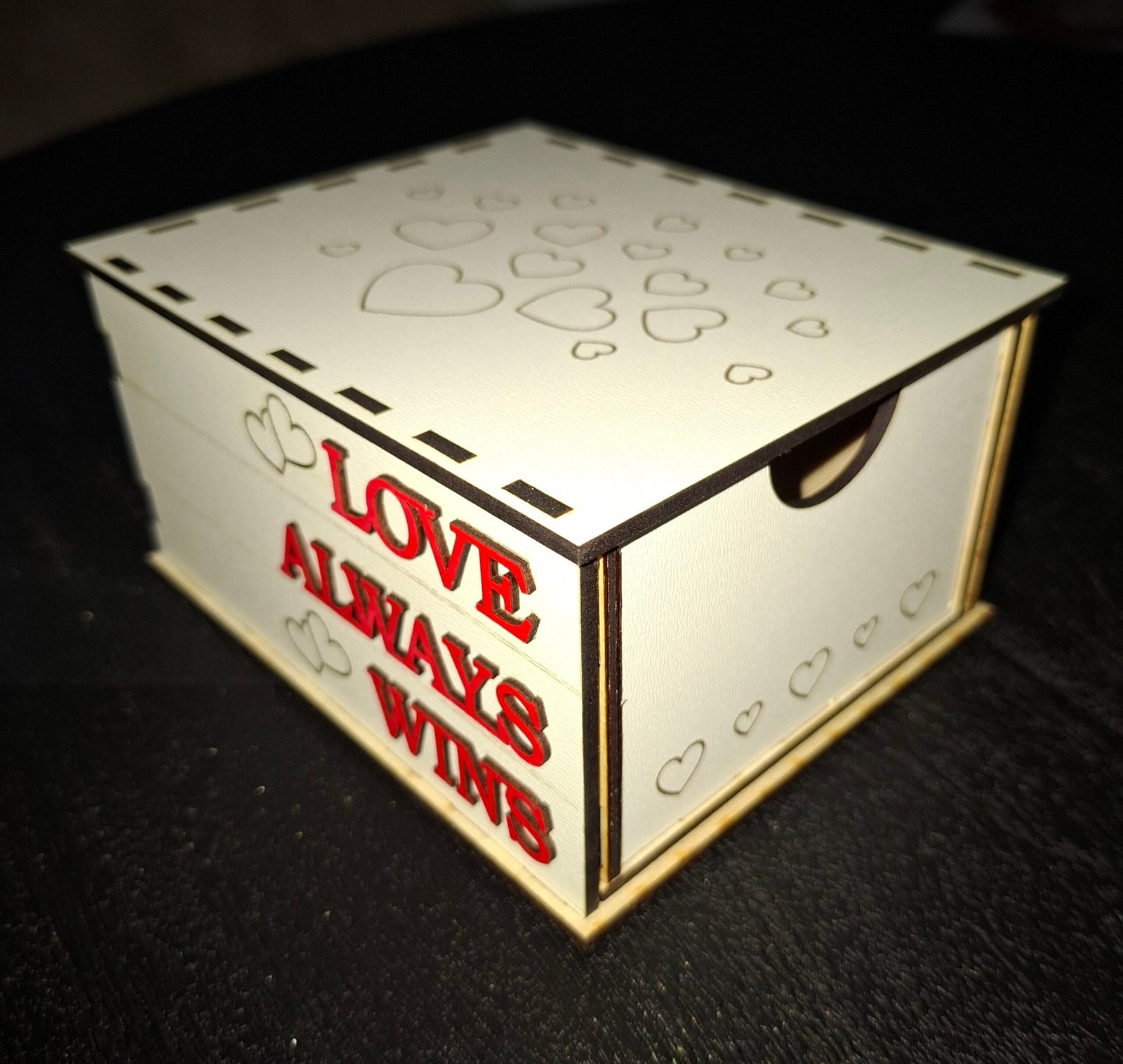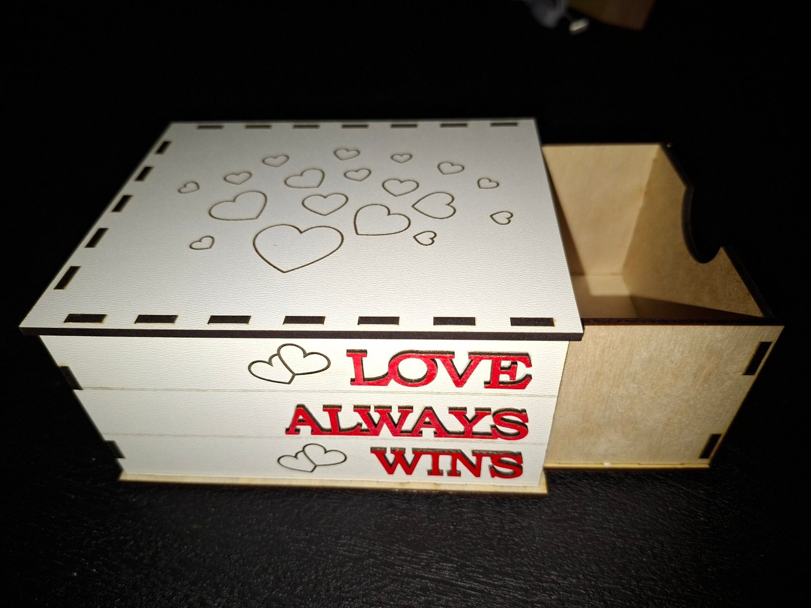 Mooi houten doosje met harten en tekst.